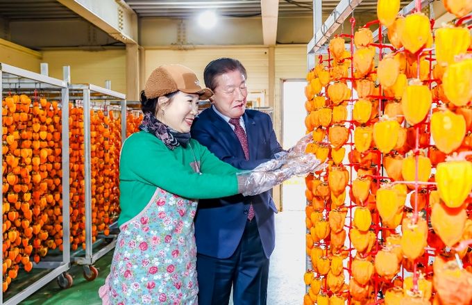 (포탈뉴스통신) 함안군은 제15회 함안곶감축제 준비와 설 명절을 앞두고 곶감 건조 작업이 한창인 가운데, 조근제 함안군수가 지난 16일 함안면 파수리의 한 곶감 농가를 찾아 현장을 살피고 농가를 격려했다고 밝혔다.