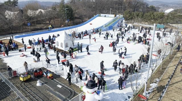 축제장에는 길이 50m 규모의 슬로프형 눈썰매장을 비롯해 ▲눈 동산·이글루 체험 ▲눈 놀이터 ▲레일 기차 ▲겨울 캐릭터 포토존 ▲먹거리존 등 아이들의 흥미를 끄는 다양한 겨울 콘텐츠가 마련돼 있다.