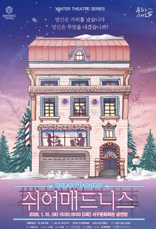 (포탈뉴스통신) 서구문화회관은‘Winter Theatre Seires(겨울 연극 시리즈)’의 첫 번째 순서로 연극'쉬어매드니스'를 1월 31일 오후 3시, 7시 (2회) 무대에 올린다.