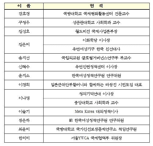 (포탈뉴스통신) '여성과 함께하는 평화 구상(Action with Women and Peace Initiative)' 2기 자문위원회가 1월 21일 출범했다. 금번에 출범한 2기 자문위원회는 여성‧평화‧안보, 인권, 개발협력, 사이버 등 분야에서 활동 중인 13명의 학계, 시민사회 등 민간 전문가로 구성되어 앞으로 동 구상 추진 과정에서 다양한 자문을 제공하게 된다.