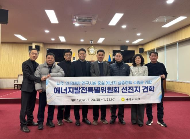 (포탈뉴스통신) 나주시의회 에너지발전특별위원회는 인공태양 연구시설 유치 이후의 안정적인 운영 전략과 제도적 과제를 점검하기 위해 지난 1월 20일부터 21일까지 청주시 일원에서 선진지 견학을 실시했다.