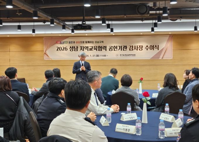(포탈뉴스통신) 경기도성남교육지원청은 1월 27일 스카이파크 호텔에서 '성남 지역교육협력 공헌기관 감사장 수여식'을 개최하여 성남교육 발전을 위해 협력해 온 지역교육협력기관 22곳에 감사의 뜻을 전했다.