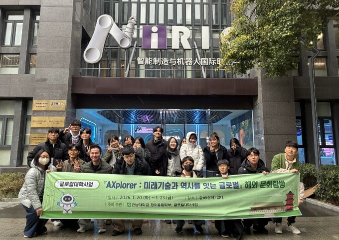 (포탈뉴스통신) 전남대학교 창의융합학부(학부장 이인혜)는 ‘글로컬대학사업’의 일환으로 지난 1월 20일부터 23일까지 3박 4일간, 중국 상해와 항주 일대에서 무전공 학생들을 위한 글로벌 진로 탐방 프로그램 'AXplorer: 미래기술과 역사를 잇는 글로벌 탐방'을 성황리에 마쳤다.