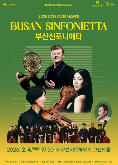 (포탈뉴스통신) 대구콘서트하우스가 주최하는 2026 DCH 앙상블 페스티벌이 오는 2월 4일 저녁 7시 30분, 대구콘서트하우스 그랜드홀에서 부산신포니에타의 개막 공연과 함께 본격적인 막을 올린다.