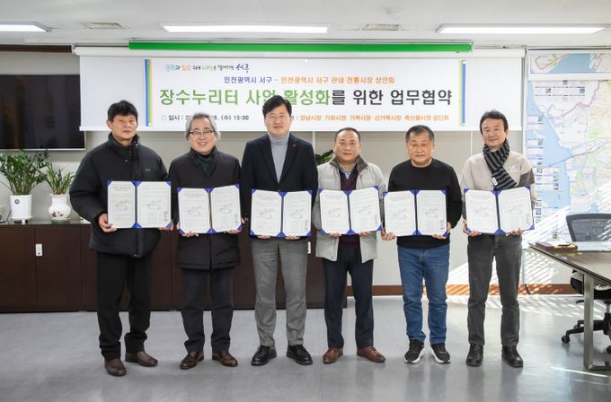 (포탈뉴스통신) 인천 서구는 지난 28일 인천광역시 서구 전통시장 상인회와 서구민의 건강한 노후를 지원하고 지역사회 돌봄 체계를 구축하기 위한 ‘장수누리터 사업 활성화’ 업무협약을 체결했다.