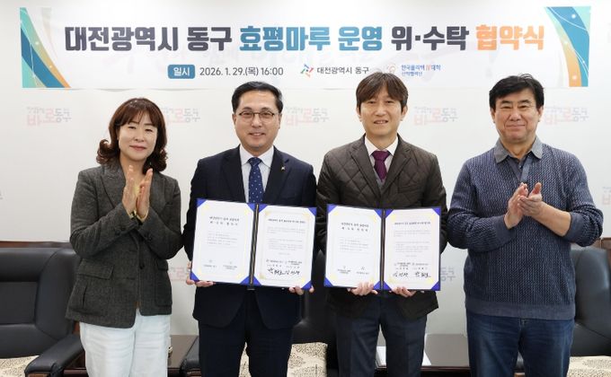 (포탈뉴스통신) 대전 동구는 29일 한국폴리텍Ⅳ대학 산학협력단(단장 김건완)과 효평마루 민간위탁 운영을 위한 위·수탁 협약을 체결했다고 밝혔다.