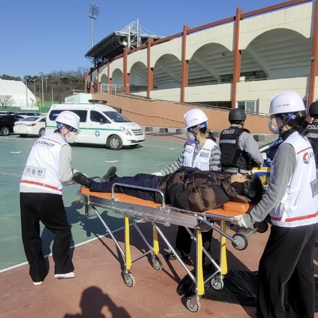 (포탈뉴스통신) 동두천시보건소는 지난 1월 29일 동두천시 종합운동장에서 동두천경찰서 주관으로 실시된 강력범죄 대응 유관기관 합동 모의훈련에 참여해 보건소 신속대응반 출동 및 현장 대응 훈련을 실시했다고 밝혔다.