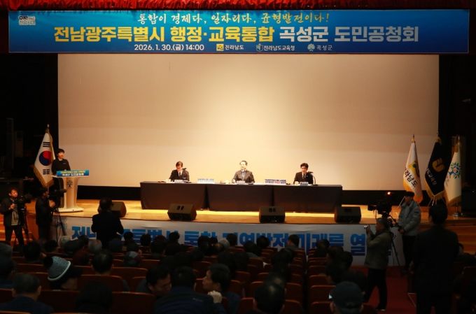 (포탈뉴스통신) 전남 곡성군은 지난 1월 30일 전남광주특별시 행정·교육통합에 대한 의견을 수렴하기 위해 곡성레저문화센터 동악아트홀에서 도민공청회를 개최했다고 2일 전했다.