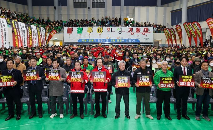 (포탈뉴스통신) 의성군은 산불 발생 위험이 높은 시기를 맞아 2월 2일, 의성종합체육관에서 산불방지 대군민결의대회를 개최하고 산불 예방을 위한 군민 실천 의지를 하나로 모았다.