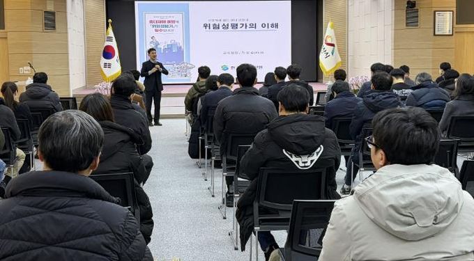 사전교육은 한국산업안전원 가성순 원장이 ▲위험성 평가 절차에 따른 사전 준비 ▲유해·위험 요인 파악 ▲위험성 추정 등 실무를 중심으로 정기위험성 평가에 대해 안내했다.