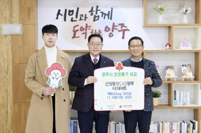 (포탈뉴스통신) 양주시는 지난 3일 관내 신성통상㈜ 리치마트가 설 명절을 맞아 양주시에 백미 300포(약 1,100만 원 상당)를 기부했다고 밝혔다.
