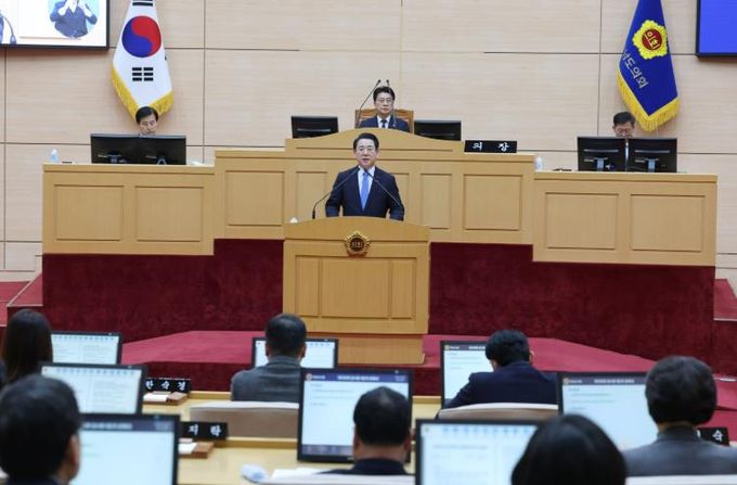 김영록 지사는 이날 제안설명을 통해 “전남·광주 행정통합은 AI·에너지 대전환 시대에 정부의 파격적 지원을 이끌어내 지역의 대부흥 시대를 열기 위한 절박함과 책임감의 산물”이라며 “산업을 일으켜 기업과 일자리가 늘어나고 청년이 돌아오는 균형발전과 번영의 선순환 구조를 만드는 것이 통합의 명확한 목적”이라고 설명했다.