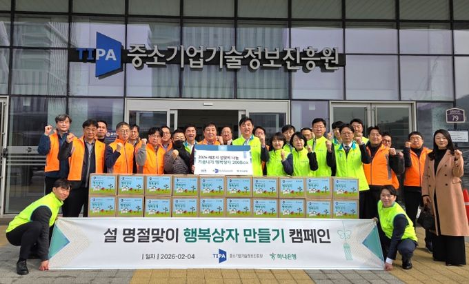 이날 TIPA는 세종 본원에서 하나은행 임직원들과 함께 지역사회 상생을 위한 ‘행복상자’를 제작했으며, 즉석식품과 라면, 샴푸 등 생활필수품과 장기 보관이 가능한 식품을 담아 준비했다.