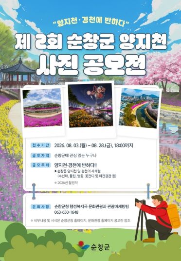 이번 공모전은 순창읍을 흐르는 양지천과 경천의 사계절 풍경과 감성적인 경관을 주제로, 사진을 통해 순창의 매력을 새롭게 조명하고 향후 관광 홍보 콘텐츠로 활용하기 위해 마련됐다.