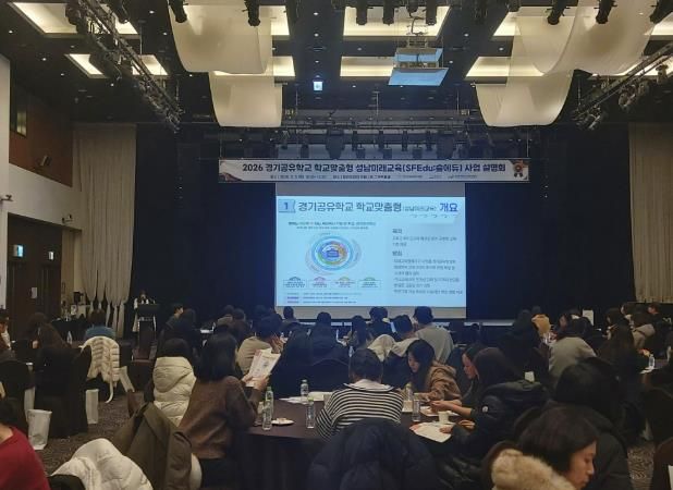 (포탈뉴스통신) 경기도성남교육지원청은 5일 밀리토피아호텔에서 관내 초·중·고·특수학교 교원 및 지자체 관계자 등 300여 명이 참석한 가운데 ‘2026 경기공유학교 학교맞춤형 성남미래교육(숲에듀) 사업설명회’를 개최했다.