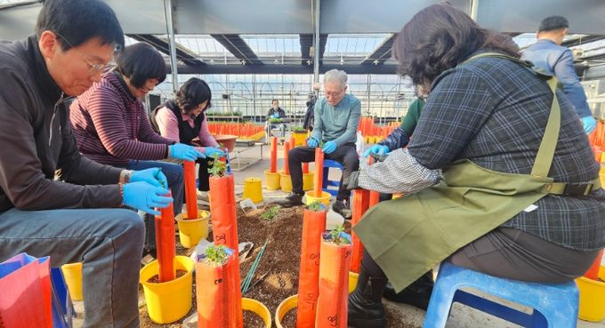 특히 연구회는 축제 작품 구상에 맞춰 생육 상태가 우수한 국화 품종을 선별하고, 국화분재 뿌리묘 올리기 작업을 진행했다.