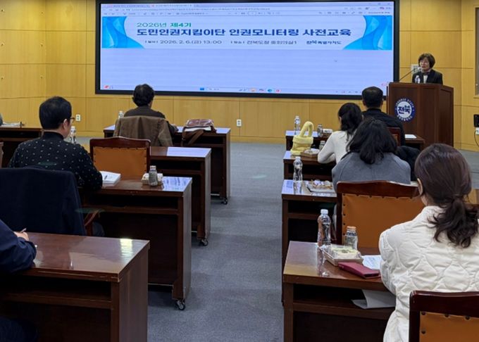 (포탈뉴스통신) 전북특별자치도 인권담당관실은 6일 도청 중회의실에서 도민인권지킴이단 시·군 단장 14명을 대상으로 ‘인권모니터링 전문 강화 교육’을 실시했다.