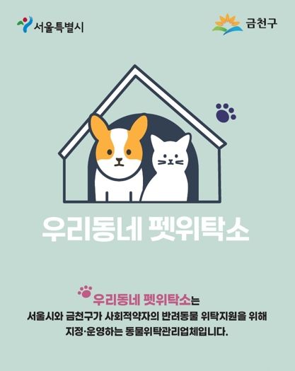 이용을 원하는 주민은 지원 대상임을 입증할 수 있는 증빙서류와 신분증 사본, 동물등록증 사본(반려견·반려묘 모두 필수)을 갖춰 반려동물과 함께 금천구 지정 동물위탁관리업체에 방문해 신청하면 된다.