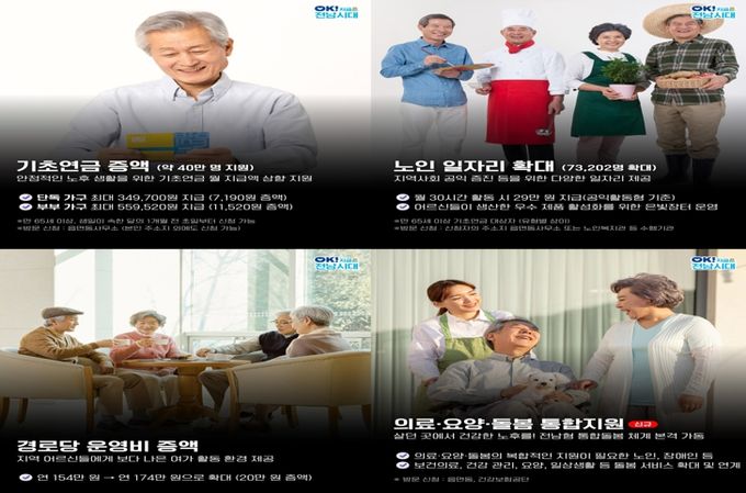 이현숙 전남도 노인복지과장은 “어르신이 살던 곳에서 안전하고 활기찬 노후를 보내도록 어르신 맞춤형 정책을 지속해서 추진하겠다”고 강조했다.