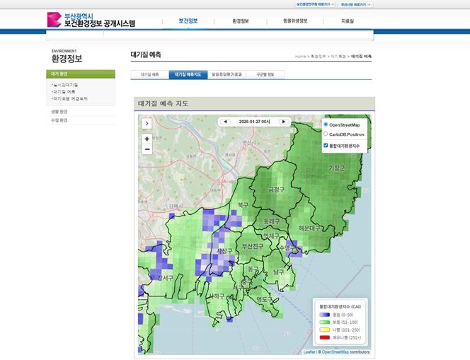 (포탈뉴스통신) 부산시 보건환경연구원은 시민 생활권의 대기질 상태를 쉽고 직관적으로 이해할 수 있도록 '지역별 상세 대기질 예측지도 서비스'를 운영한다고 밝혔다.