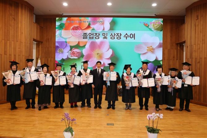 이날 졸업식에는 졸업생과 가족, 내빈 등 200여 명이 참석한 가운데, 학산풍물동아리의 식전 공연을 시작으로 재학생 시니어 모델들의 축하 워킹, 졸업장 및 상장 수여, 경과보고 등이 차례로 진행되며 졸업의 의미를 함께 나눴다.