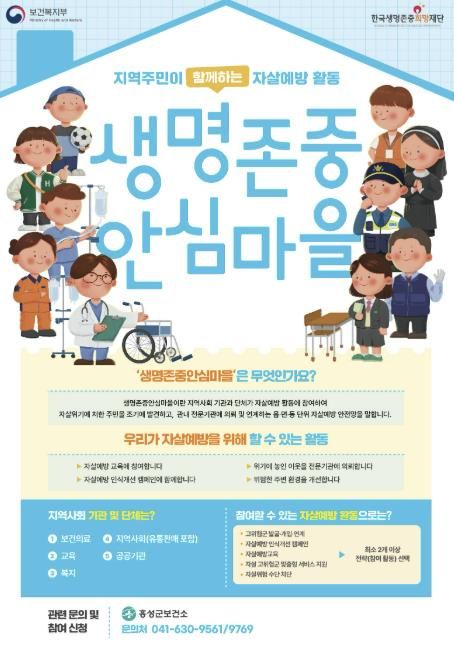 홍성군은 지난해 6개 읍·면(홍성읍·홍북읍·금마면·홍동면·장곡면·서부면)을 생명존중안심마을로 선정하여 사업을 추진한 결과, 지역 내 57개 기관·단체가 참여하는 민·관 협력 기반을 구축했으며, 올해는 기존 운영 성과를 바탕으로 참여 기관·단체를 100개소까지 확대하여 지역사회 자살예방 안전망을 강화할 계획이다.