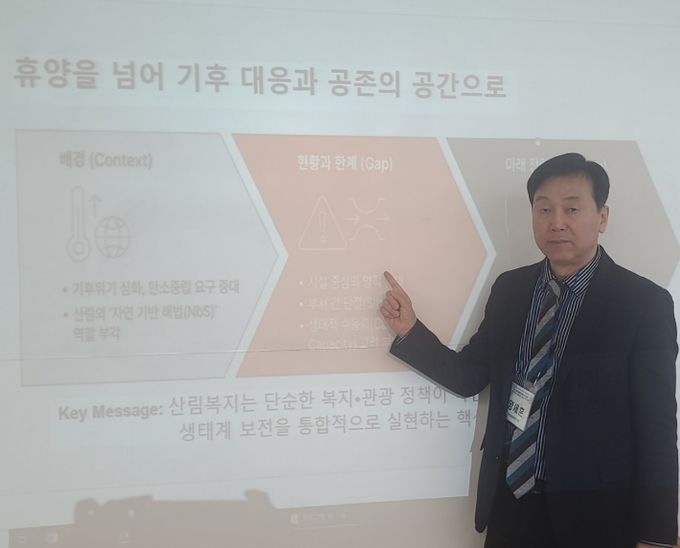 행정안전부 등 38개 기관이 공동주최한 학술대회에서 양세훈 센터장은 산림복지를 단순한 복지·관광 정책이 아닌 기후위기 대응과 생태계 보전을 통합적으로 실현하는 핵심 환경정책으로 재정립 할 것을 강조했다.