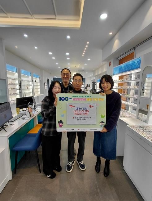 (포탈뉴스통신) 의정부시 송산1동주민센터는 2월 4일 캠퍼스 안경이 관내 노인 및 청소년을 위해 안경 13개(65만 원 상당)를 기부하며 ‘100일간 사랑릴레이 배턴 잇기’에 동참했다고 밝혔다.