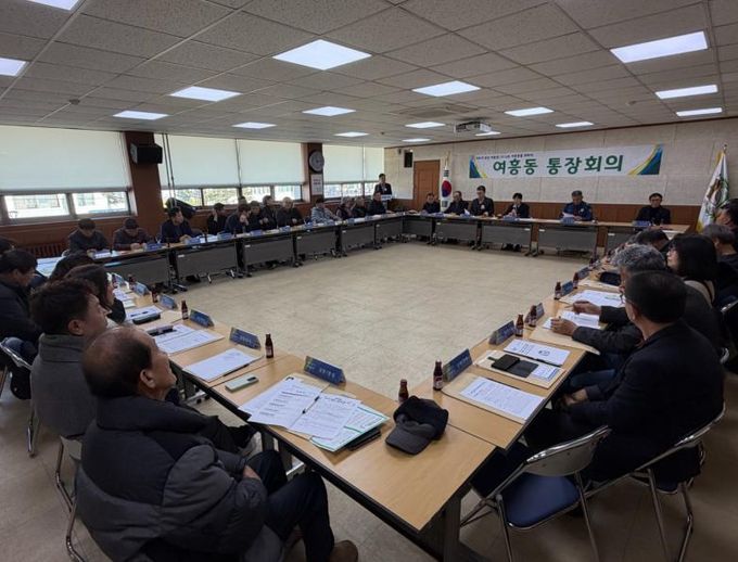 (포탈뉴스통신) 여주시 여흥동은 6일 오전, 행정복지센터 2층 회의실에서 제10대 김광덕 부시장과 함께하는 2월 1차 통장회의를 개최했다. 회의에는 김광덕 부시장, 김영완 여흥동장, 정지남 홍문지구대장, 이병길 여주농협조합장 및 33개 마을 통장이 참석했다.