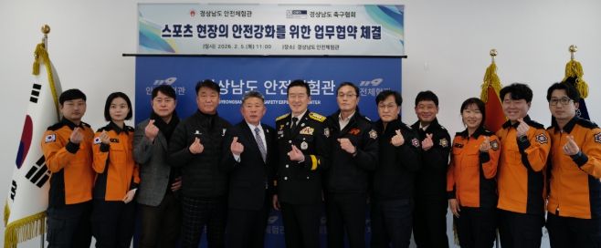 (포탈뉴스통신) 경상남도 소방본부는 지난 5일, 경상남도 안전체험관(관장 윤진희)과 경상남도 축구협회(회장 백찬문)가 축구 현장의 안전 강화를 위한 업무협약(MOU)을 체결했다고 9일 밝혔다.