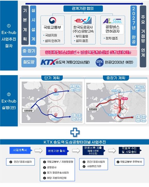 ex-HUB는 공항버스와 도시 내 대중교통을 직접 연결하는 환승시설로, 기존 인프라를 활용해 저비용·단기간 구축이 가능하다는 장점이 있다.