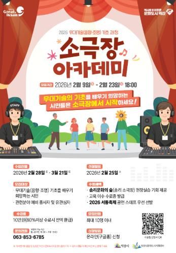 시는 익산시문화도시지원센터와 함께 '소극장 아카데미' 수강생을 오는 23일까지 모집한다.