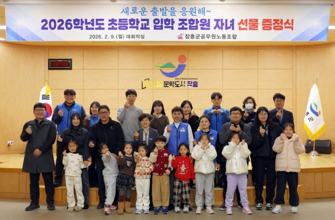 (포탈뉴스통신) 장흥군과 장흥군공무원노동조합은 지난 9일, 2026학년도 초등학교 입학을 앞둔 조합원 자녀와 가정을 격려하는 행사를 열고 학용품 세트를 전달했다.