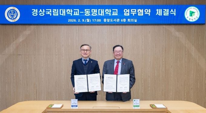 경상국립대학교는 2월 9일 오후 5시 가좌캠퍼스 중앙도서관 6층 회의실에서 동명대학교와 ‘반려동물산업 발전을 위한 상생 협력 업무협약’을 체결했다.