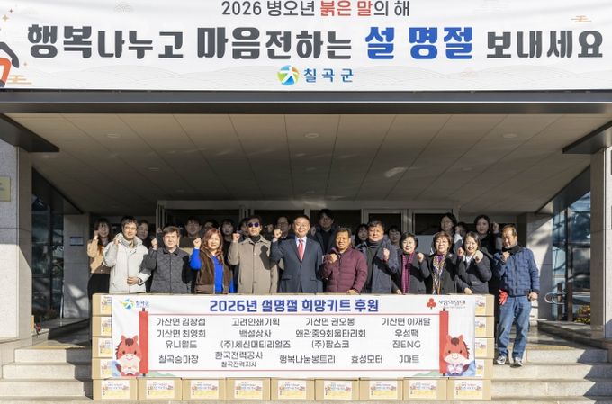 칠곡군 관계자는 “경기가 어려운 상황임에도 불구하고 명절마다 잊지 않고 따뜻한 나눔을 실천해 주신 후원자분들께 진심으로 감사드린다”며 “앞으로도 촘촘한 민·관 협력 네트워크를 구축해 복지 사각지대에 있는 취약계층 지원에 최선을 다하겠다”고 밝혔다.