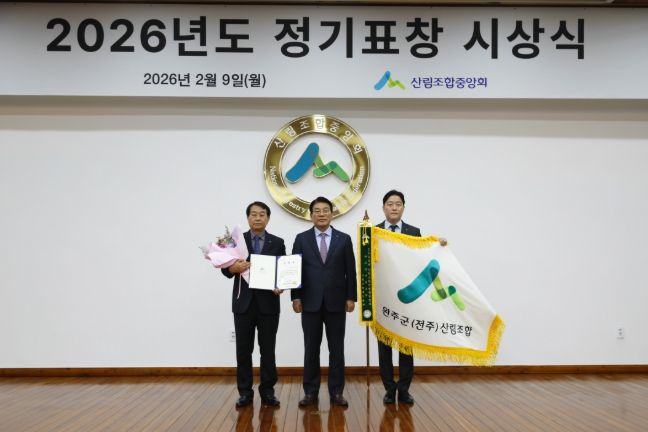 (포탈뉴스통신) 완주군(전주)산림조합(조합장 임필환)은 지난9일 서울 송파구 산림조합중앙회 청사에서 열린 ‘2026년 정기표창 시상식’에서 전국 산림조합 경영종합평가 분야 3위에 선정돼 수상의 영예를 안았다.