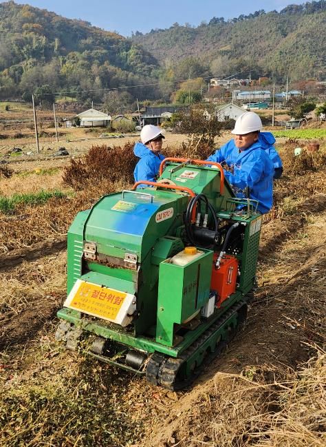 파쇄지원단은 6개 권역에 각 1개조(3~4명)를 편성해 산림 연접지 100m 이내 농경지의 고령농, 여성농, 장애농 등 취약계층과 소규모 농가를 대상으로 영농부산물 무상 파쇄를 지원한다.