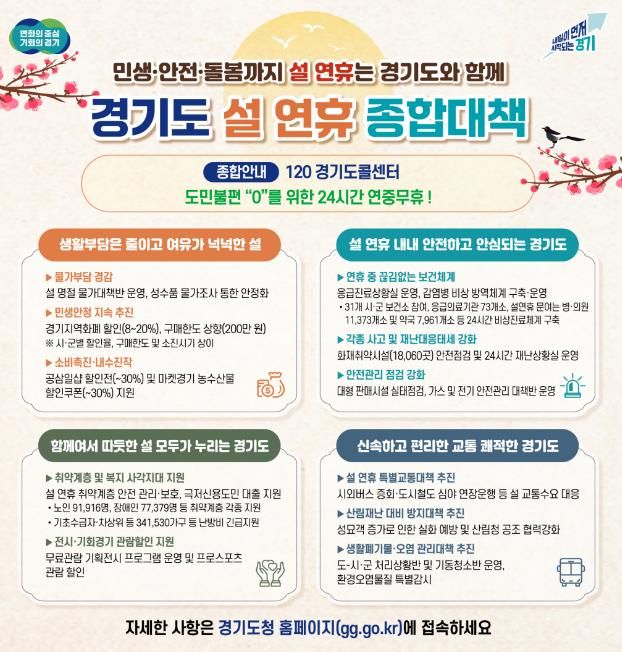 (포탈뉴스통신) 경기도가 도민들이 따뜻하고 편안한 명절을 보낼 수 있도록 ‘설 연휴 종합대책’을 추진한다.