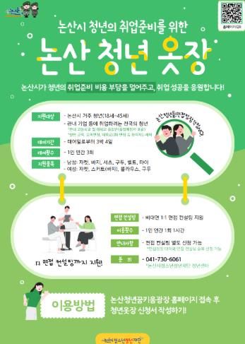 백성현 논산시장은 “취업을 준비하는 청년들이 비용 부담 때문에 어려움을 겪지 않길 바란다”며 “앞으로도 청년 한 사람 한 사람의 도전이 소중한 결실로 이어질 수 있도록 실질절인 청년 지원 정책을 지속적으로 확대해 나가겠다”고 말했다.