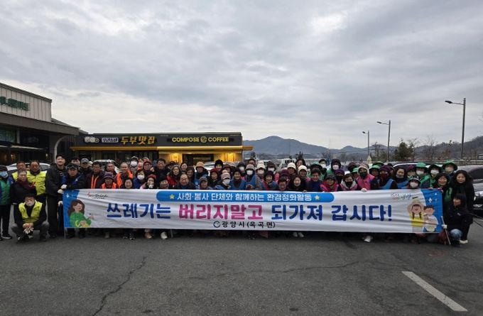 이번 환경정화활동은 광양시 관계자와 옥곡면 이장협의회, 주민자치위원회, 새마을부녀회 등 9개 사회단체 110여 명과 면사무소 직원 10여 명 등 총 120여 명이 참여했다.