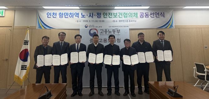 (포탈뉴스통신) 중부지방고용노동청은 2월 11일 인천 항만하역 현장의 산업재해 예방과 안전문화 정착을 위해 노동자·사업주·정부가 함께하는 ‘인천 항만하역 노·사·정 안전보건협의체 공동선언식’을 개최했다.