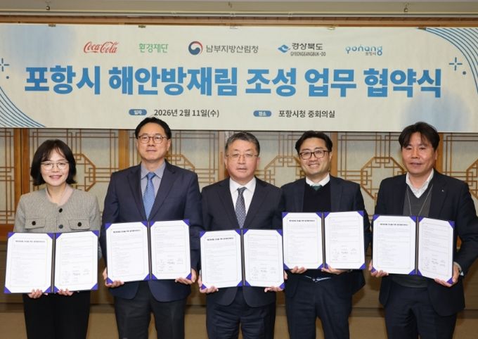 시는 11일 한국 코카-콜라, 환경재단, 남부지방산림청, 경상북도산림환경연구원과 ‘해안방재림 조성사업 업무협약(MOU)’을 체결하고 민·관 협력체계를 공식화했다.