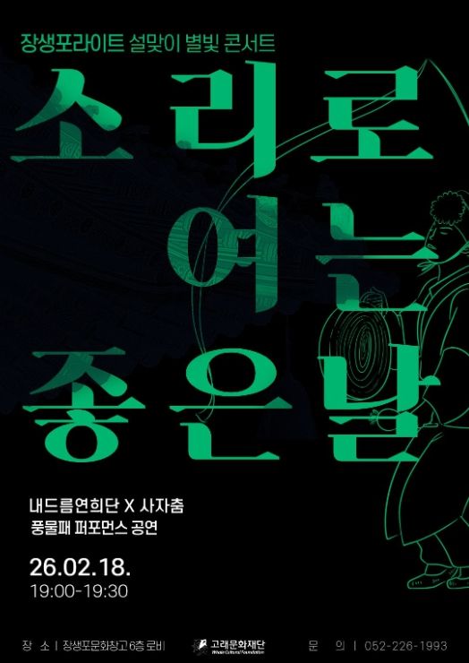 고래문화재단 관계자는 “시민들이 가족과 친지들과 함께 뜻깊고 즐거운 설 명절을 보낼 수 있도록 장생포라이트와 연계한 다양한 문화행사를 준비했다”며 “앞으로도 지역사회와 협력해 시민들이 일상 속에서 문화예술을 향유할 수 있는 프로그램을 지속적으로 확대해 나가겠다”고 밝혔다.