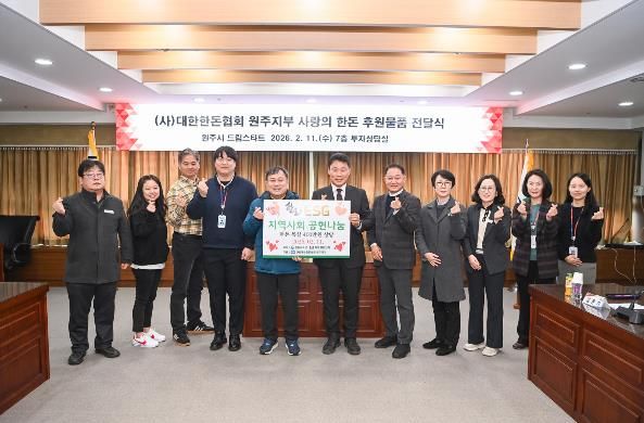 김문기 부시장은 “매년 취약계층을 위해 나눔을 실천해 주시는 대한한돈협회 원주지부에 진심으로 감사드린다”라며, “보내주신 소중한 물품은 각 가정이 따뜻한 명절을 보낼 수 있도록 신속히 전달하겠다”라고 말했다.