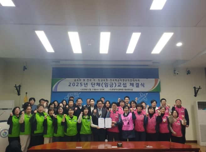 (포탈뉴스통신) 울산광역시교육청을 포함한 전국 17개 시도교육청이 11일 인천광역시교육청에서 전국학교비정규직연대회의와 ‘2025년 집단 임금 교섭 체결식’을 열었다.
