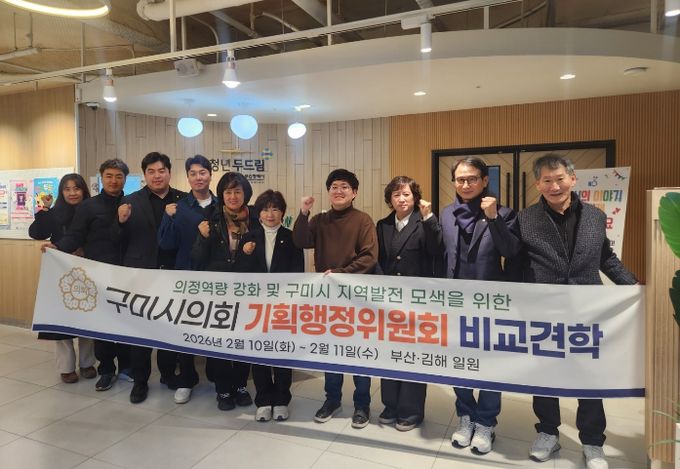 (포탈뉴스통신) 구미시의회 기획행정위원회(위원장 장미경)에서는 2월 10일 화요일부터 11일 수요일까지 1박 2일간 제293회 구미시의회 임시회 폐회 중 부산 및 김해 일원의 선도 시설을 방문하여 청년 지원, 보훈 행정, 유휴 공간 재생 정책 전반을 살펴보았다.