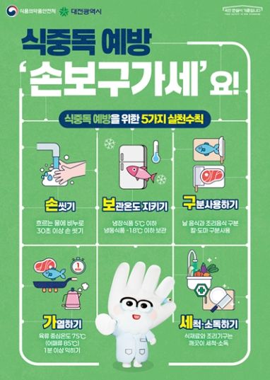 최동규 대전시 체육건강국장은 “명절 연휴에는 가족 모임과 외식 증가로 식중독 발생 위험이 높아지는 만큼 음식은 충분히 익혀 먹고 상온에 장시간 방치하지 않는 등 식품 위생 수칙을 철저히 지켜달라”라고 당부했다.