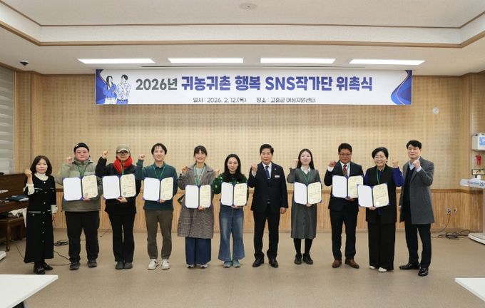 (포탈뉴스통신) 고흥군은 12일 도시민 유치와 군정 홍보 강화를 위해 ‘2026년 귀농·귀촌 행복 SNS 작가단’ 10명을 위촉하고 본격적인 활동에 들어갔다고 밝혔다.