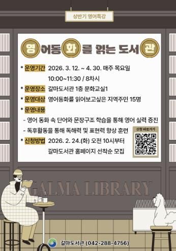 (포탈뉴스통신) 대전 서구 갈마도서관은 아이부터 어른까지 함께하는 영어 독해 강좌를 운영한다.
