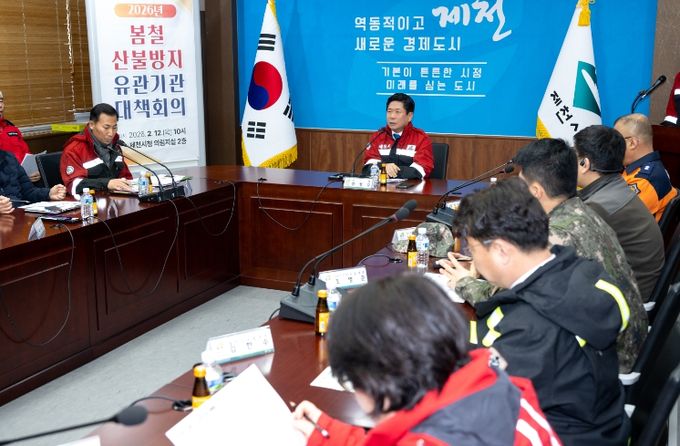 시는 지난 12일 시청 의림지실에서 김창규 제천시장 주재로 유관 기관 합동 산불방지 대책회의를 열어, 봄철 산불 예방과 신속한 대응을 위한 협력체계를 점검했다고 밝혔다.